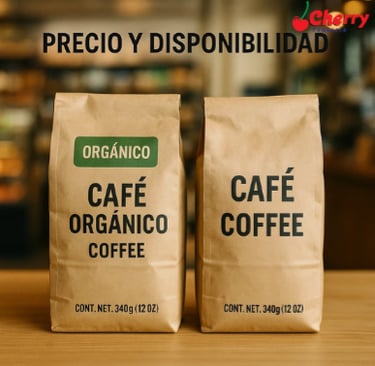 Orgánico suele ser más caro, disponibilidad en tiendas locales y cafés especializados.