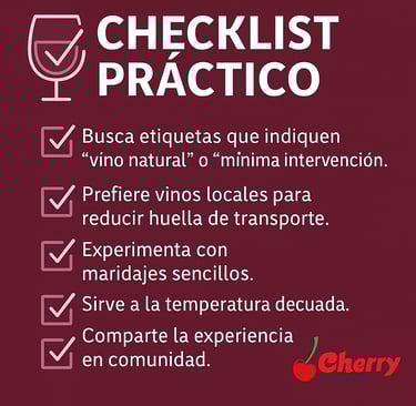 - Busca etiquetas que indiquen "vino natural" o "mínima intervención"