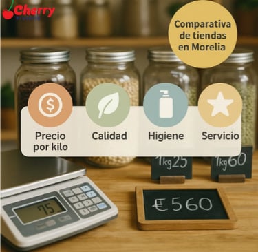 Comparativa de tiendas en Morelia para comprar productos a granel considerando precio, calidad y variedad.