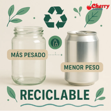Lata: reciclable, menor peso pero uso de metal.