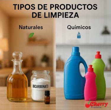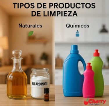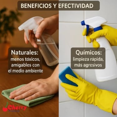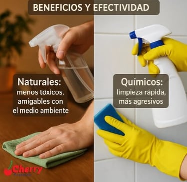 Comparativa de limpieza con productos naturales vs químicos, evaluando efectividad, seguridad y costo.